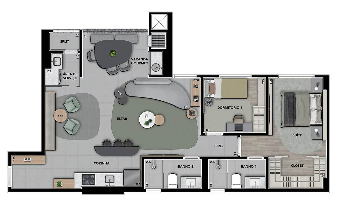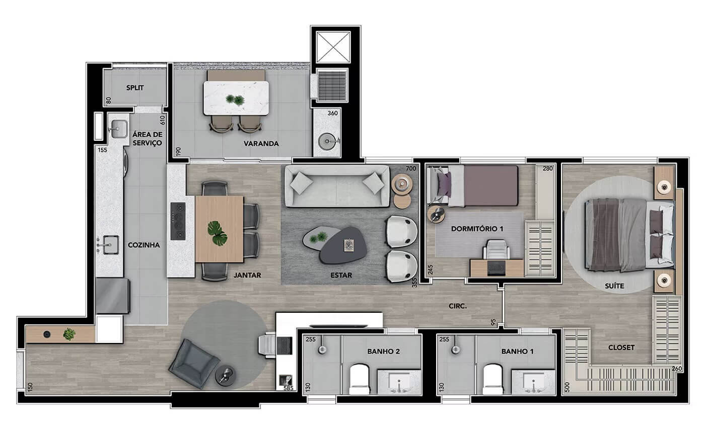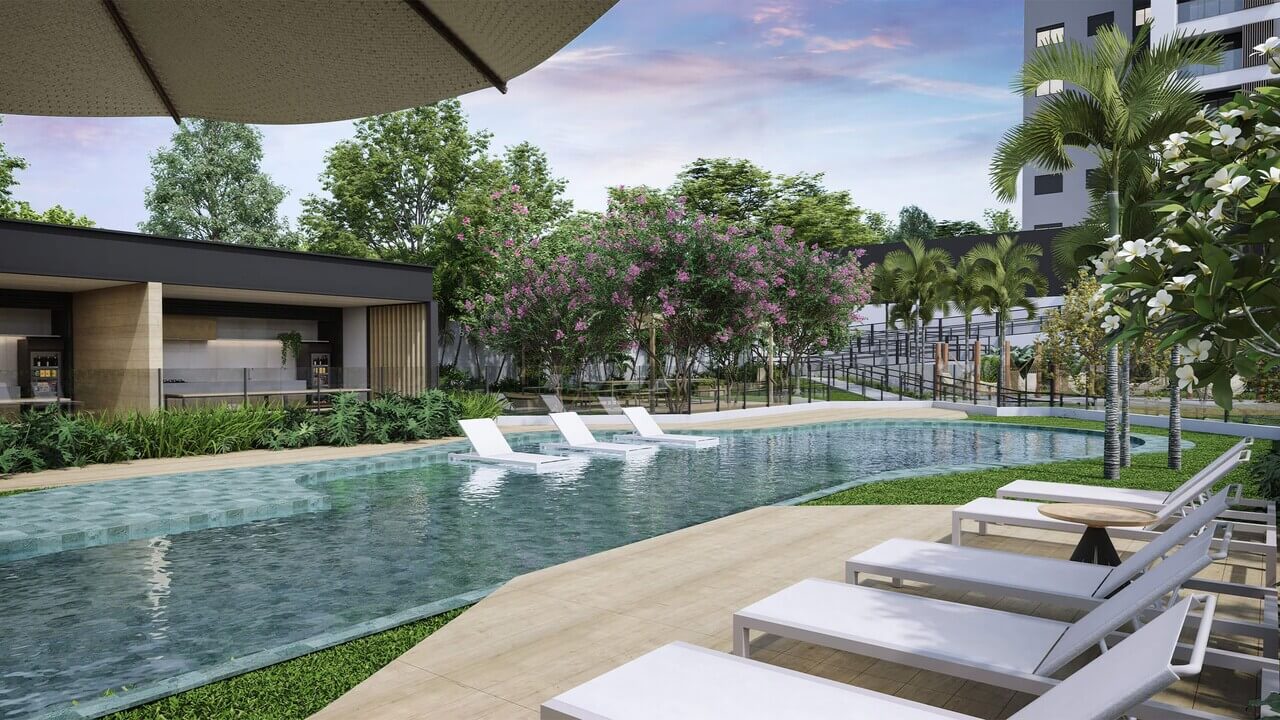 A área de lazer é completa, destacando-se pelo parque particular de 1800m², piscinas, salão de festas, praça coworking, fonte, complexo fitness, mini campo, redário, beach tennis, playground, pet place e muito mais!