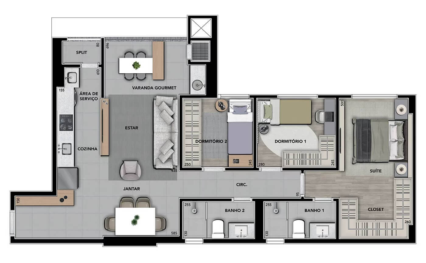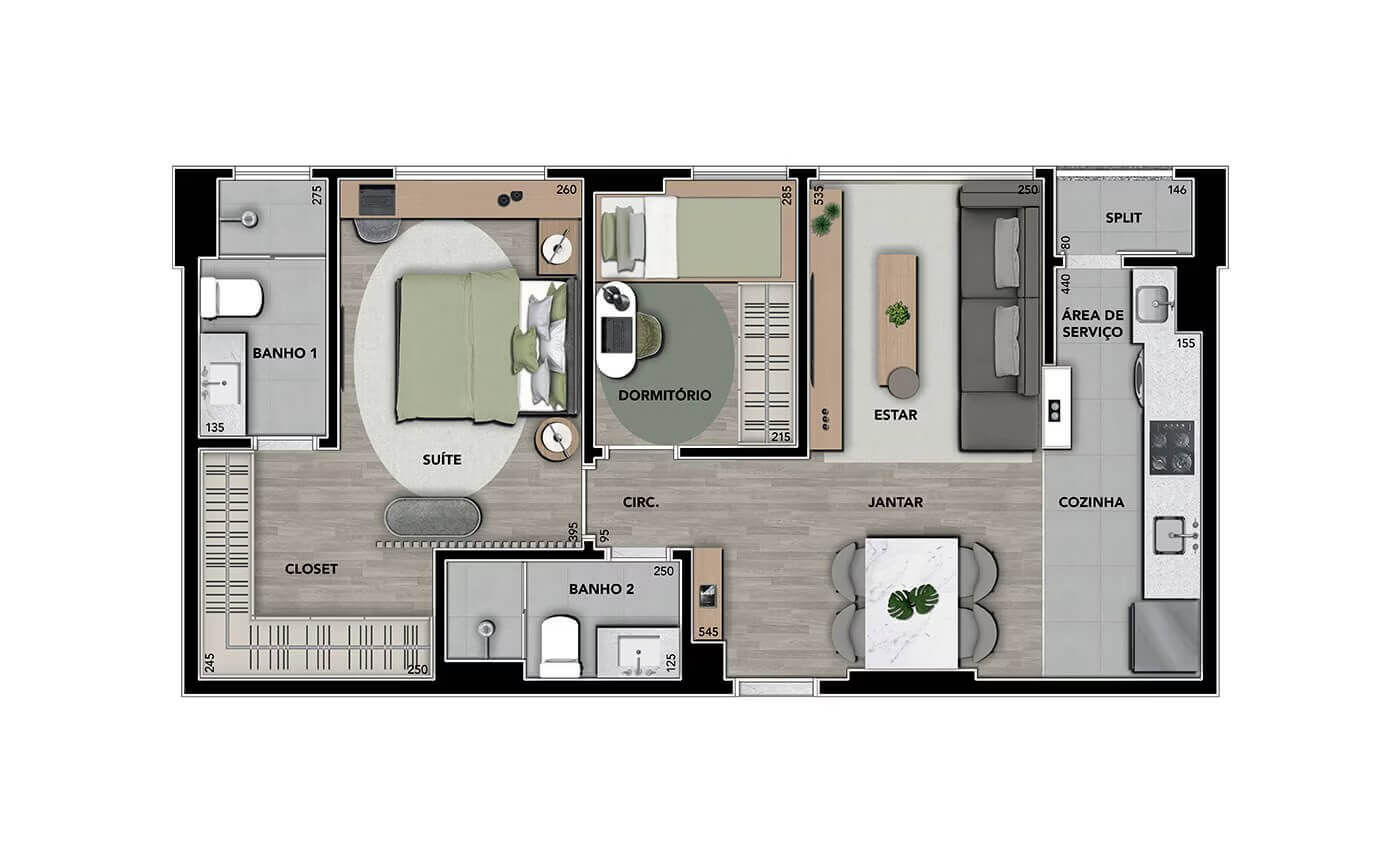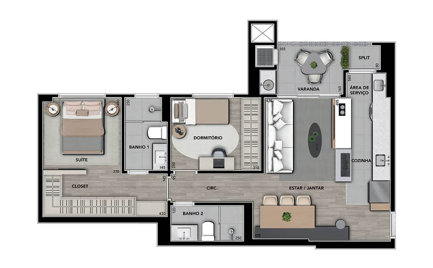 A área de lazer é completa, destacando-se pelo parque particular de 1800m², piscinas, salão de festas, praça coworking, fonte, complexo fitness, mini campo, redário, beach tennis, playground, pet place e muito mais!